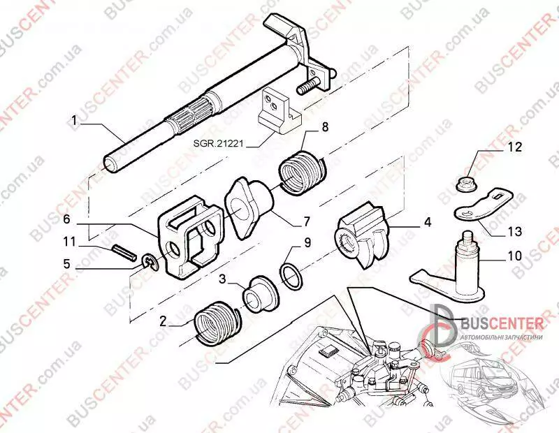 Вал выбора передач КПП (комплект) Fiat Fiorino 55194676