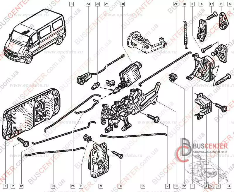 Замок боковой правой сдвижной двери верхний
