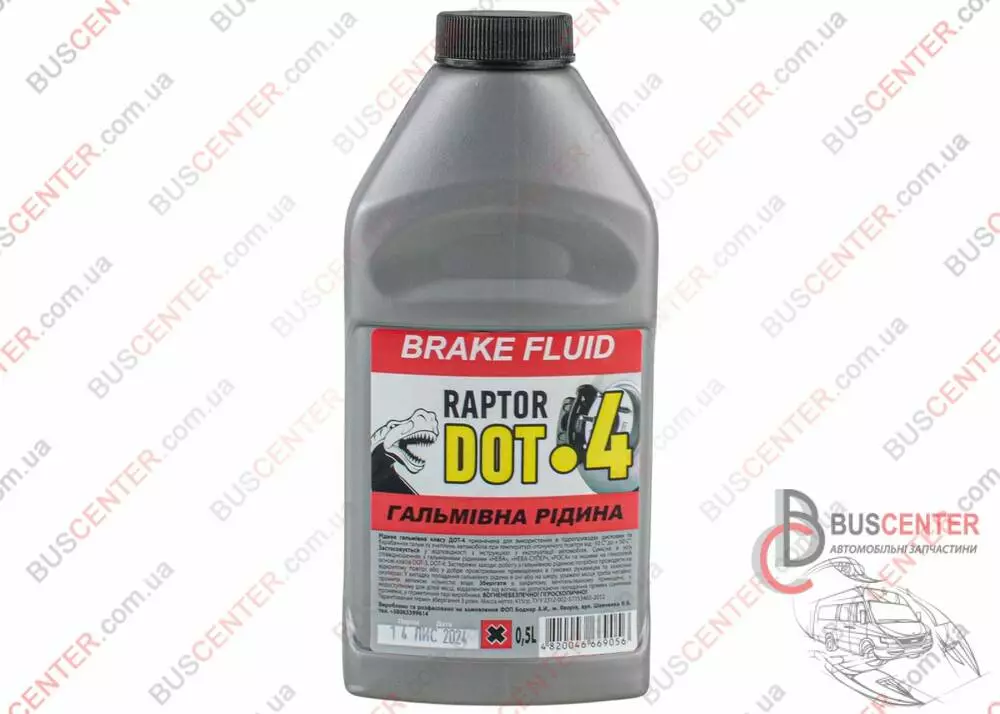 Жидкость тормозная 500ml RAPTOR DOT4 DOT4 500ML.R